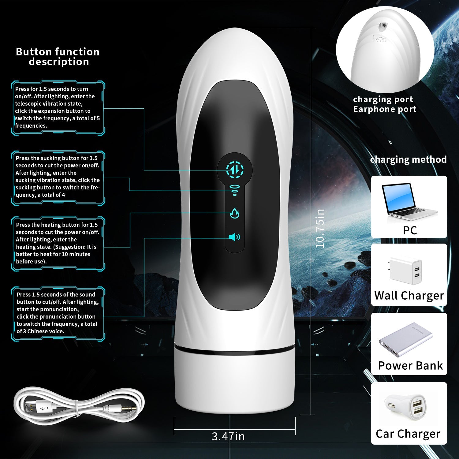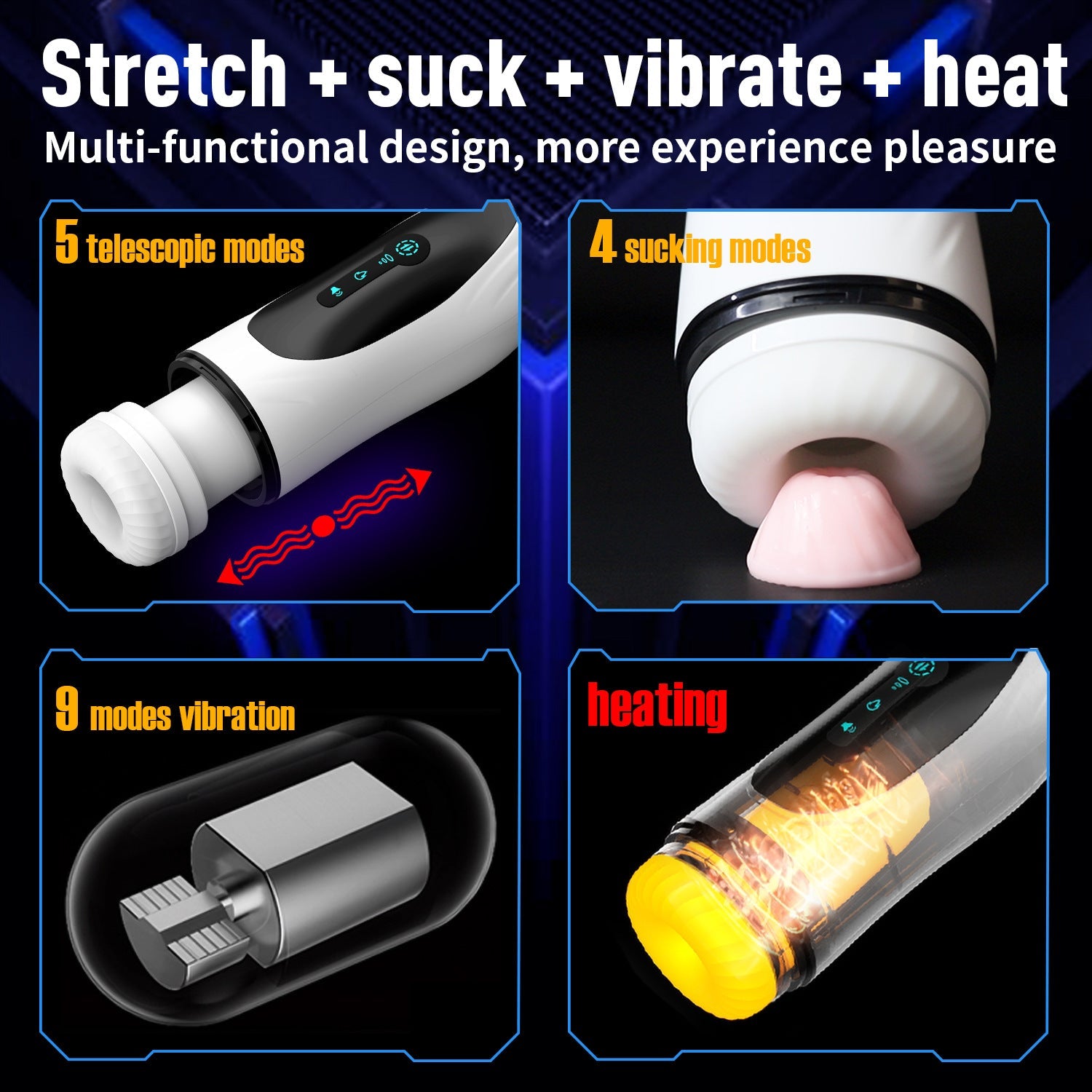 5 Vibrating 4 Sucking Men's Masturbation Cup Electric with Female Moans